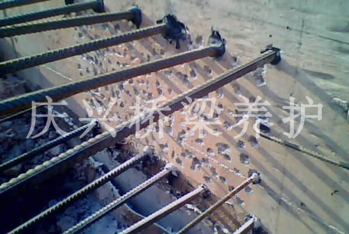 2、 用沖擊鉆鉆孔?讖酱笥阡摻钪睆4mm,深度為鋼筋直徑15d。